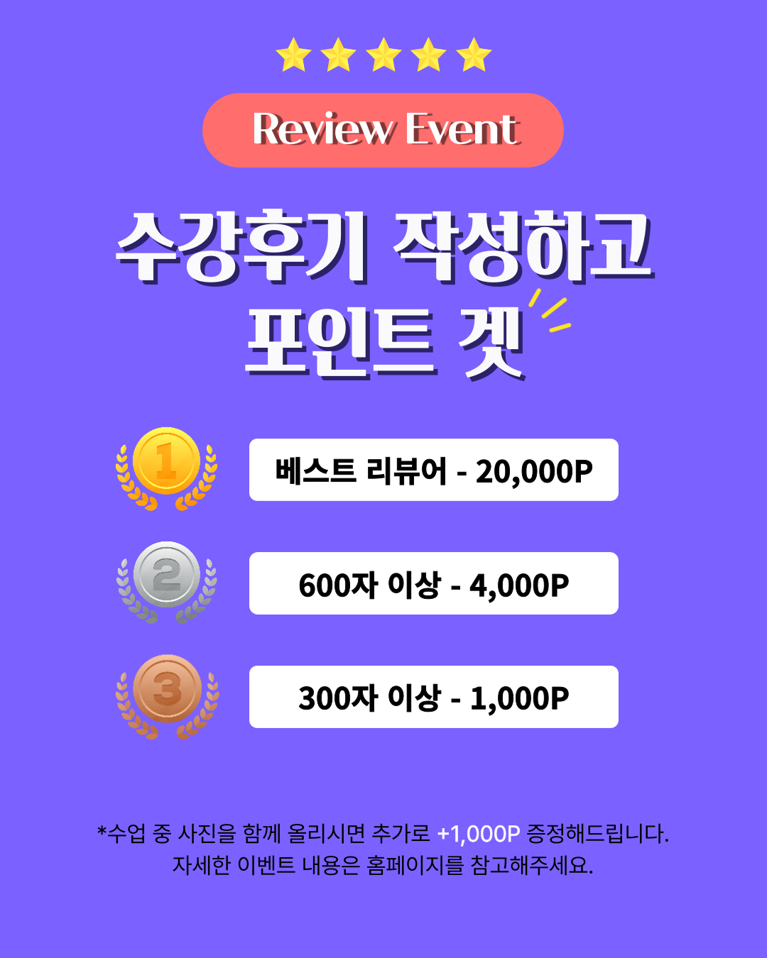 [진행중] 정규수업 수강후기 작성하고 포인트 겟!